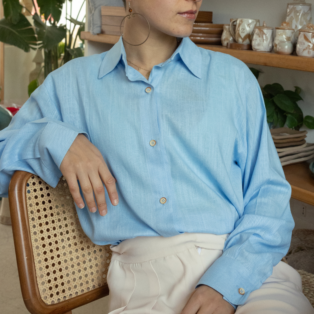 For a chic, effortless look, pair this linen shirt with crisp white jeans and stylish slides. Suitable for both casual outings and more relaxed settings, this piece is an essential staple that elevates any ensemble.
